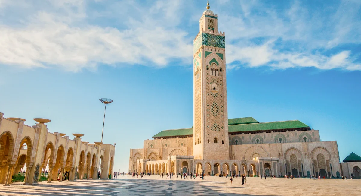 Breakfast at your hotel riad, then leave Fes and head on a 4-hour drive to Casablanca via Rabat. We will stop for lunch along the drive. We will arrive in Casablanca in the afternoon to check-in to your hotel. You might use the evening to have a walk by the famous corniche of Ain Diab in Casablanca. Accommodation overnight in a hotel or riad BB.