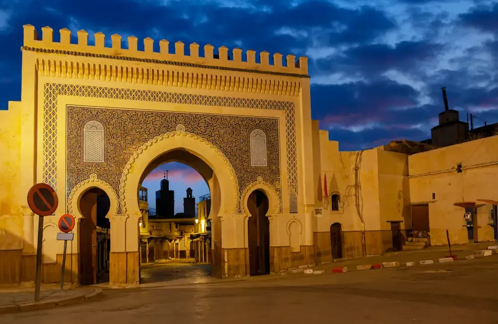 After breakfast at your hotel riad, our informative humble local guide meets you at the lobby of the hotel riad to start exploring Fes or Fez which is the same, the spiritual city of Morocco. Today you will have an adventure through the intellectual capital of Morocco. Fes is the country’s cultural capital, and is primarily known for its Fes El Bali, or walled medina, with medieval architecture, vibrant souks and old-world atmosphere. We will start from outside the medina to see the royal palace gate, then walk through the Jewish quarter or “the mellah” the first Jewish quarter ever built in the country. Following that, you will enter the medina where you will spend the entire morning visiting most of the sites with cultural and historical interest, including the famous Medrasa Bouanania, the Karaouine mosque and university which is the oldest university in the world that was built by a woman, without forgetting the famous tanneries and the najjarine fountain, before you experience a tasty Moroccan lunch in one of the local restaurants in the heart of the medina. After lunch, you will be driven to one of the fortresses to experience an amazing panoramic view of the whole medina of Fes, followed by a visit to pottery area where you will see the pottery cooperative. Time permitting, we will drive to a new city of Fes to experience a beautiful drive through a different modern atmosphere, before we take you back to your hotel or riad BB.